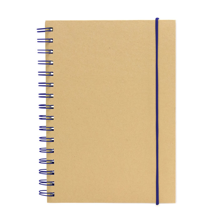 LIBRETA "IBERICA" Tapa recubierta en papel kraft de 120 g. Interior de 70 hojas blancas rayadas de 80 g. Cierre con banda elástica y espiral del mismo color.