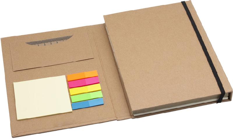 CUADERNO MEMO SEMANAL "WORKIT" Cuaderno anotador múltiples funciones. El kit contiene: un bloc de hojas rayadas con fecha y dia de la semana, regla de madera, regla de pvc, dos lápices negros, goma de borrar, sacapuntas y bolígrafo tinta negra. Ademas un set de Post- it cuadrados amarillos y tiras plásticas autoadhesivas de diferentes colores (azul, verde, amarillo, rosa y naranja). El cierre del cuaderno es con una banda elástica de color negro que permite una buena sujeción.