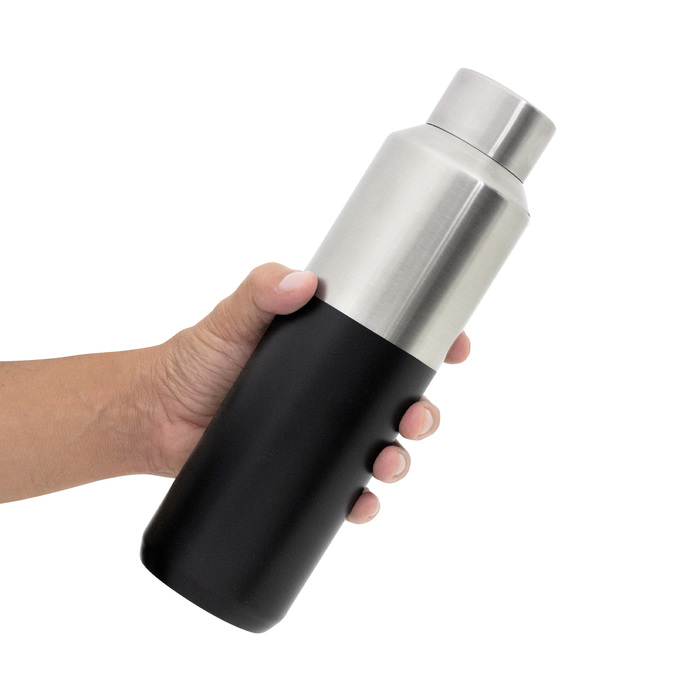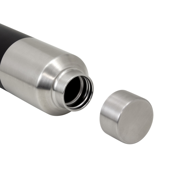 Botella térmica "DASH" Botella doble pared, sellada al vacío. Interior de acero 304 y exterior de acero 201. Tapa a rosca de acero 201 con anillo de silicona. Pintura acabado mate en parte inferior. Mantiene por más de 12 hs la temperatura de las bebidas calientes y 24 hs de las bebidas frías.