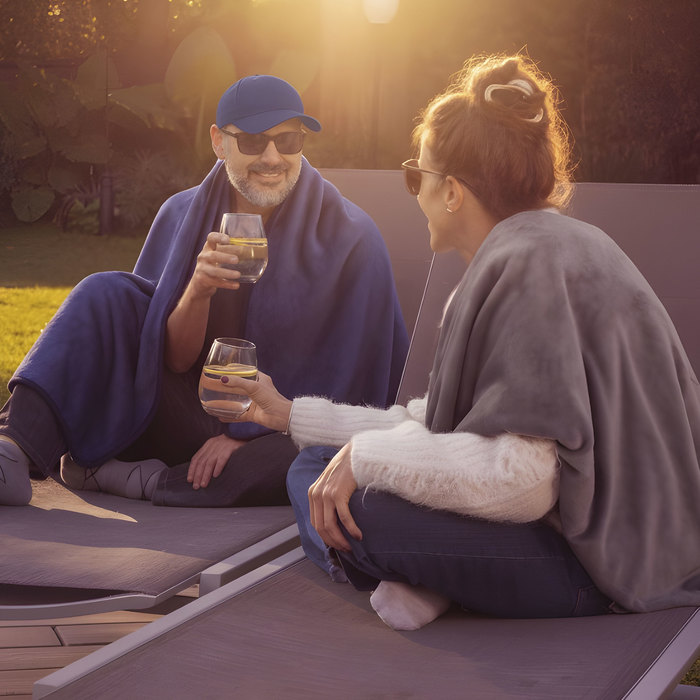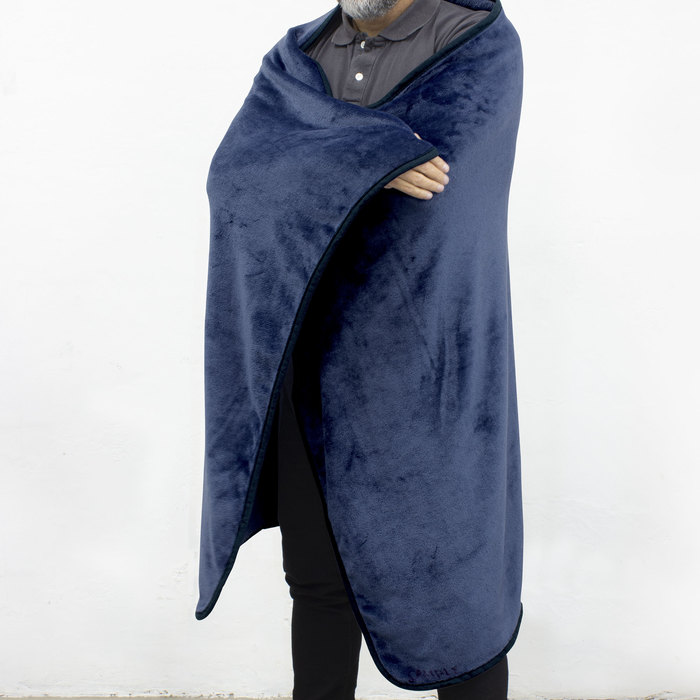 MATERIAL: Forro polar de 220 g/m2, poliéster y aluminio MEDIDAS: 150 x 100 cm. Funda 35 x 25 cm IMPRESION: Serigrafía