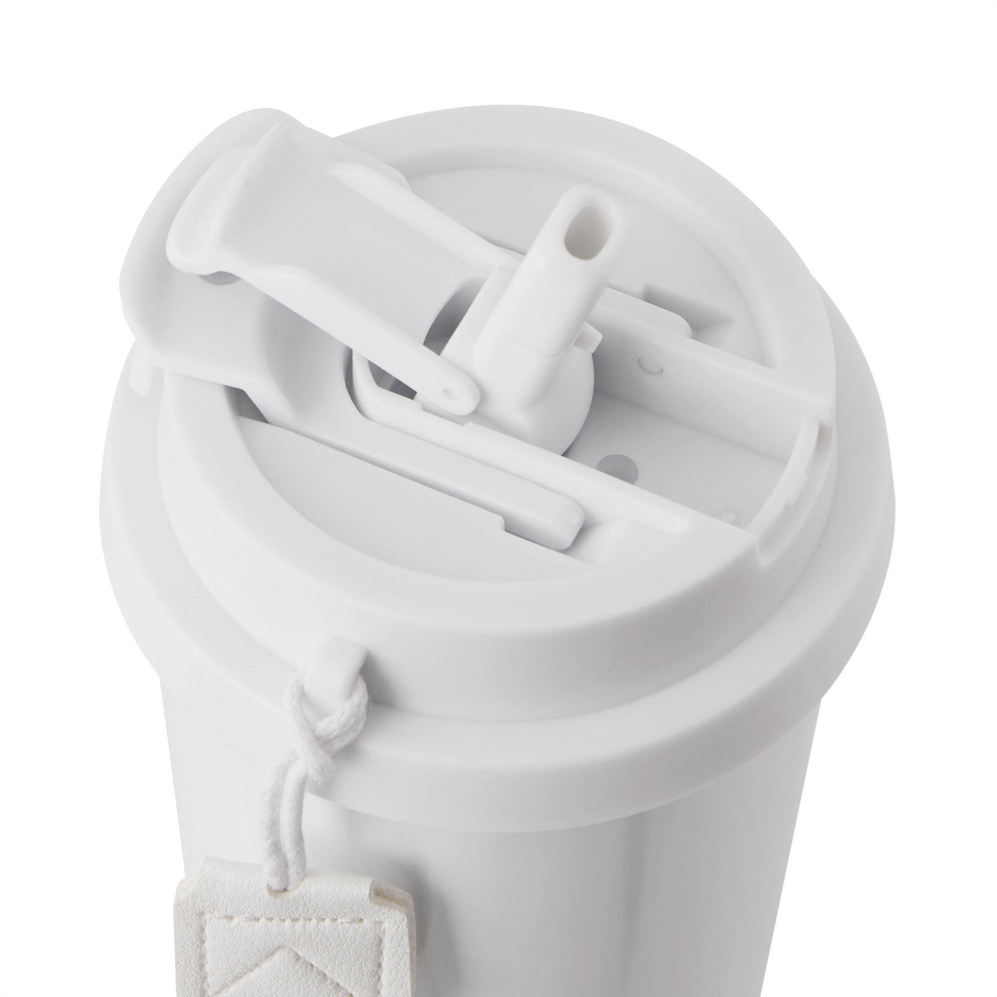 Mug térmico "LUNGO" Mug doble pared, sellado al vacío. Interior en acero 304 y exterior en acero 201. Tapa de polipropileno a rosca y anillo de silicona, 2 en 1, con popote de polietileno incorporado, seguro antiderrame a presión y correa de poliéster. Tapa y correa del mismo color que el vaso. Pintura con acabado mate, textura suave al tacto. Base en acero 201. Mantiene hasta 12 hs la temperatura de las bebidas calientes y 24 hs de las bebidas frías