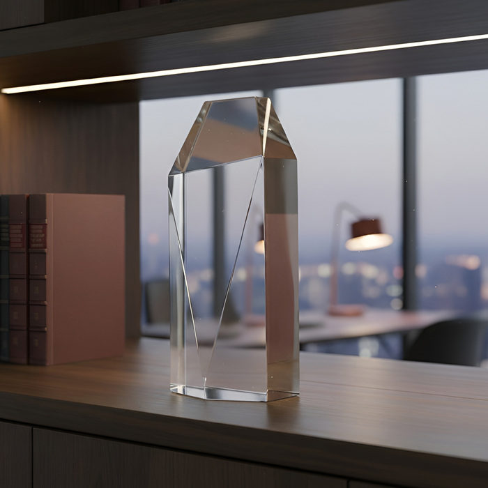 Trofeo "WINNER III" Trofeo de vidrio facetado simil cristal.