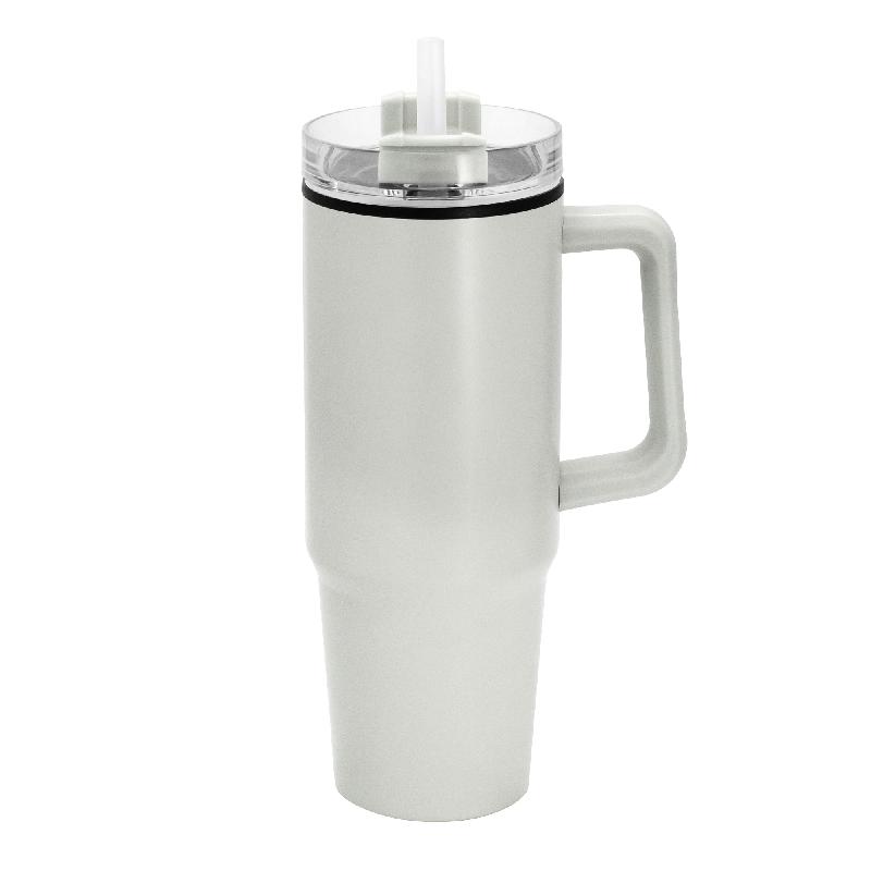 Mug "MEGA" Capacidad 880 ml. Acero inoxidable y PP. Mug doble pared con sorbete. Interior de plástico PP y exterior de acero 201. Tapa plástica transparente a rosca con anillo de silicona. Cierre giratorio porta sorbete. Sorbete plástico translucido. Pintura exterior con acabado mate. Mantiene las bebidas frías y calientes por más tiempo. Presentación en caja de regalo kraft.