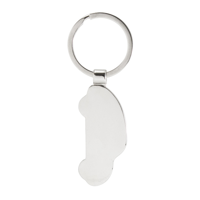 Llavero "KICAR" Llavero con forma de auto. Estructura metálica con aleación de zinc con acabado brillante y panel frontal de bambú barnizado.