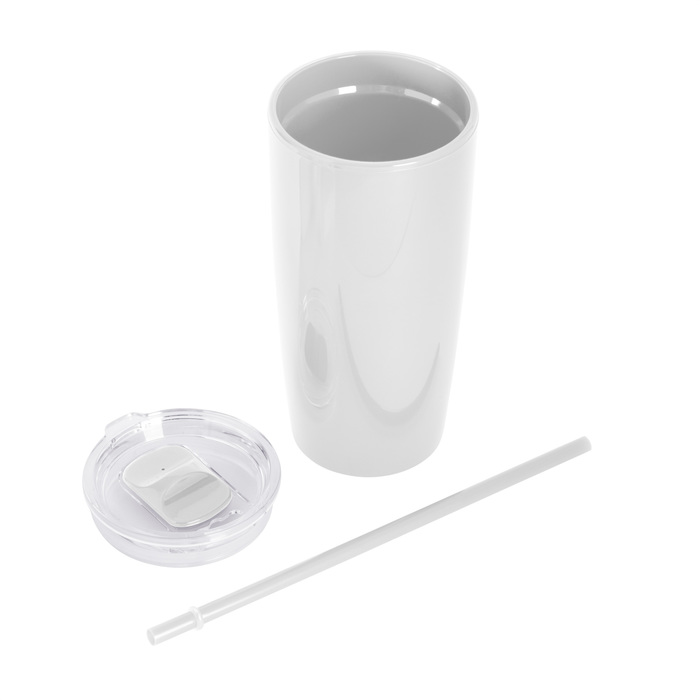 Mug "TOMMY" Disfruta de tus bebidas favoritas con comodidad. Doble pared con popote. Tapa plástica transparente a presión con anillo de silicona. Popote de polipropileno y cierre deslizante del mismo color que el cuerpo. Cuerpo con acabado brillante.
