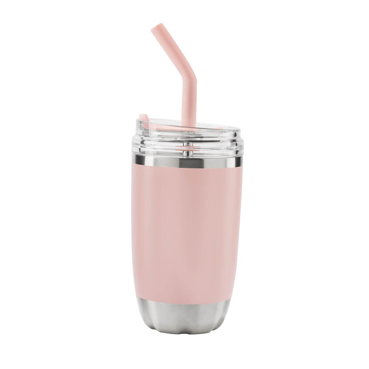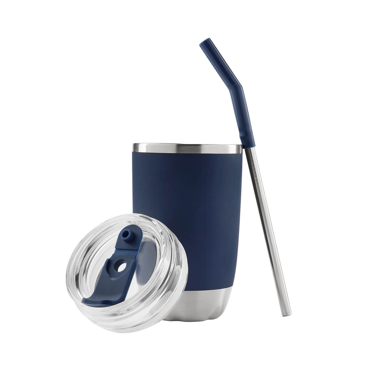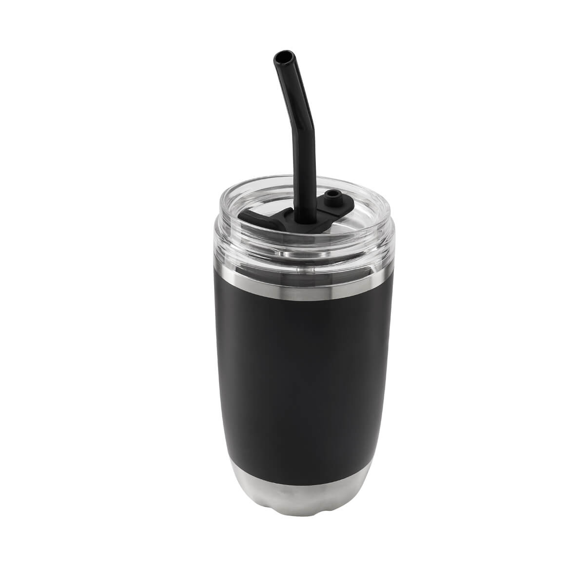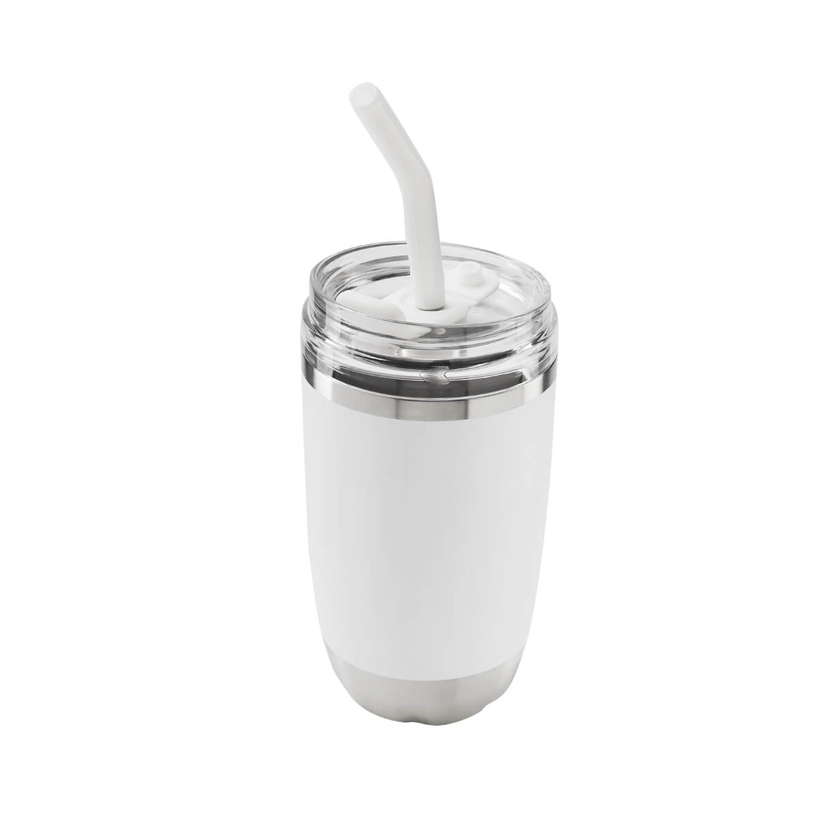 TERMO FRENZY - Doble pared. Cerrado al vacío. Pared interna y externa de acero inoxidable. Tapa push de plástico con sobretapa de silicón removible y ranura especial con tapón para popote. Incluye popote metálico con boquilla de silicón. Mantiene temperatura caliente 2 hrs y temperatura fría 8 hrs. Caja individual incluida.