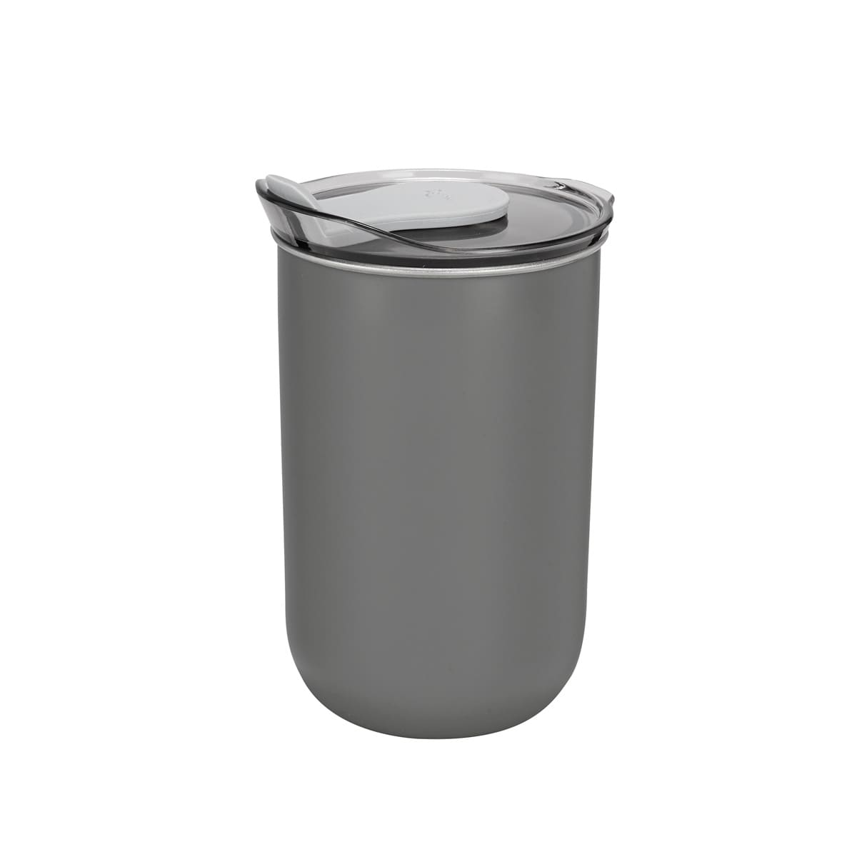 TERMO LATE - Doble pared. Pared interna de acero inoxidable y externa de plástico. Tapa de plástico con sistema push y sobretapa de silicón movible. Incluye caja individual.