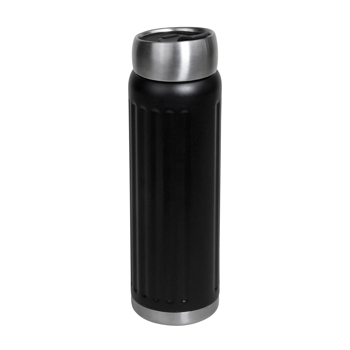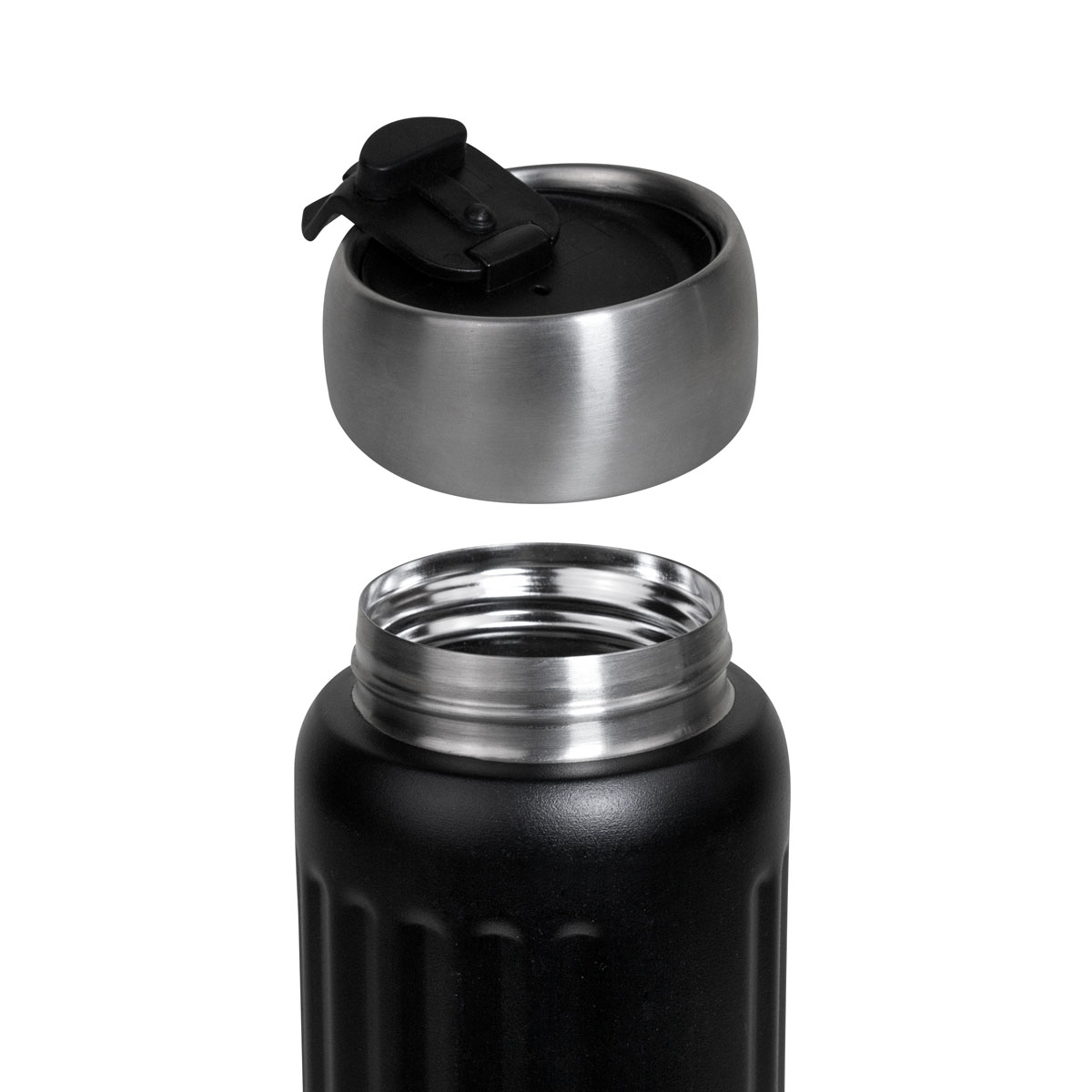 TERMO TOREN - Doble pared. Cerrado al vacío. Pared interna y externa acero inoxidable. Tapa metálica con sistema de rosca. Sobre tapa de plástico con sistema de push. Terminado rugoso. Mantiene temperatura caliente 6 hrs y temperatura fría 12 hrs aproximadamente. Incluye caja individual