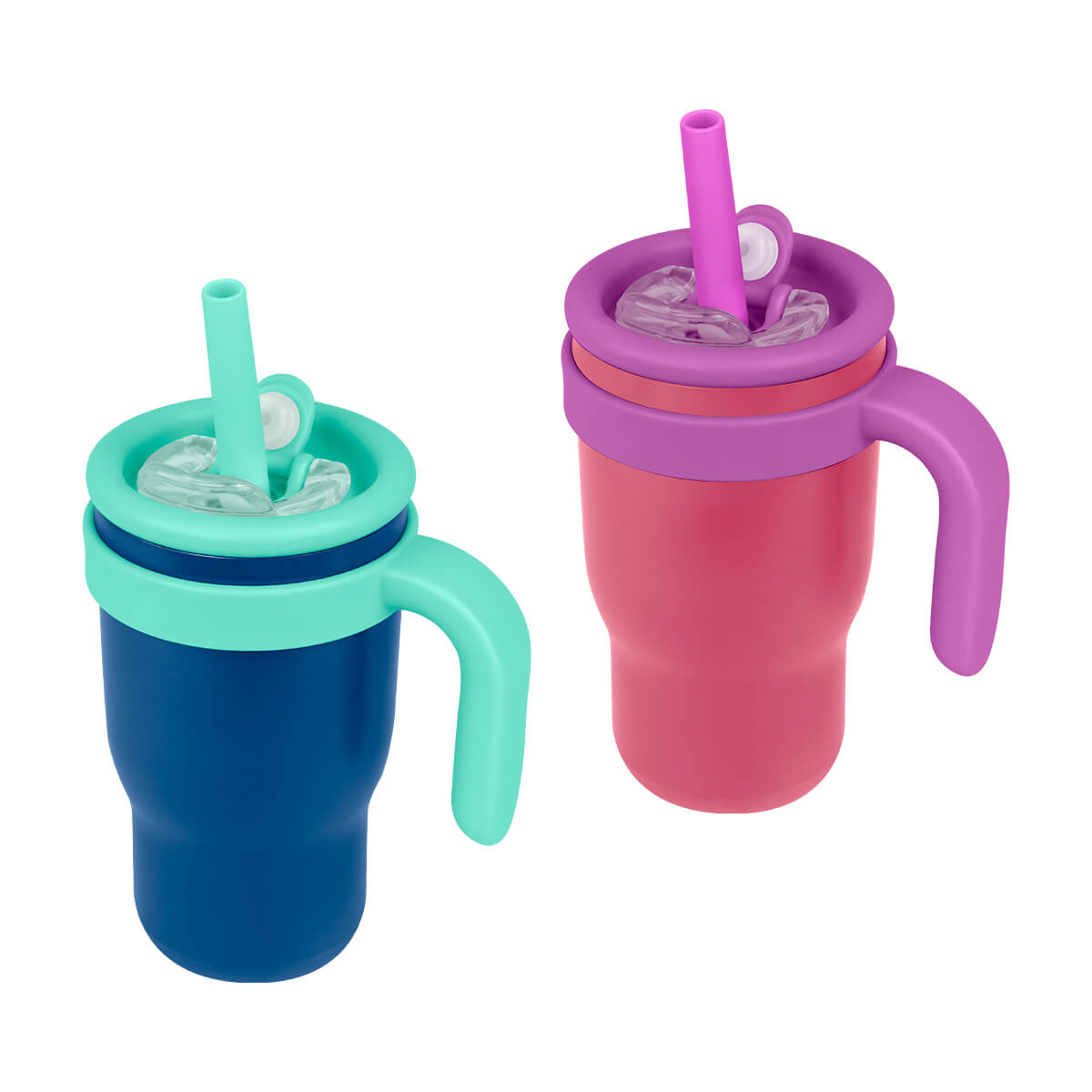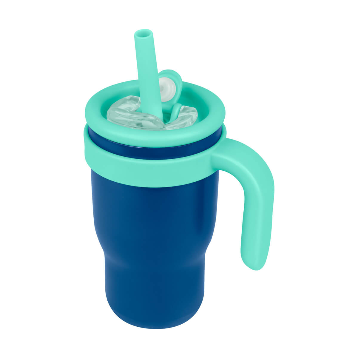 TERMO ANTALL - Termo doble pared. Cerrado al vacío. Pared interna y externa de acero inoxidable. Tapa de plástico con cierre de rosca que le aporta mayor seguridad. Cuenta con dos funcionalidades en la tapa, boquilla para beber con sobre tapa push y ranura para popote con sobre tapa adicional. Popote con boquilla de silicón, avanzado sistema de cierre anti derrames y asa de plástico. Su práctico tamaño, te permitirá transportarlo fácilmente a cualquier lugar. Ideal para niños y adultos. Mantiene temperatura caliente 6 hrs y fría 8 hrs. Capacidad de 15 Oz. Base de 6.5 cm de diámetro. Incluye cuerpo con terminado rugoso y caja individual.