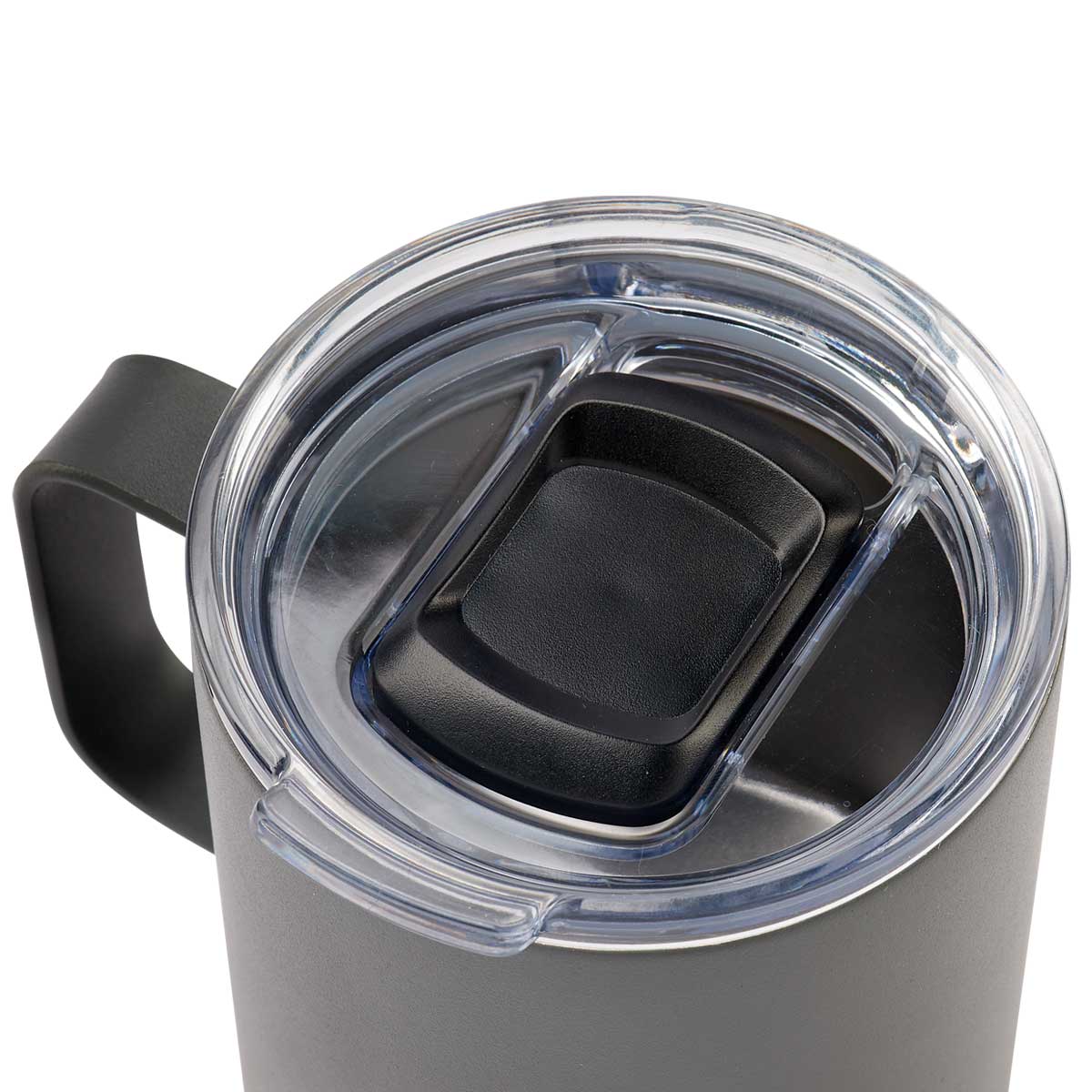 TAZA SAVOR - Doble pared. Cerrado al vacío. Pared interna y externa de acero inoxidable. Base texturizada elaborada de corcho y PVC. Tapa de plástico con válvula de seguridad. Mantiene temperatura caliente 3 hrs y temperatura fría 5 hrs. Incluye caja individual.