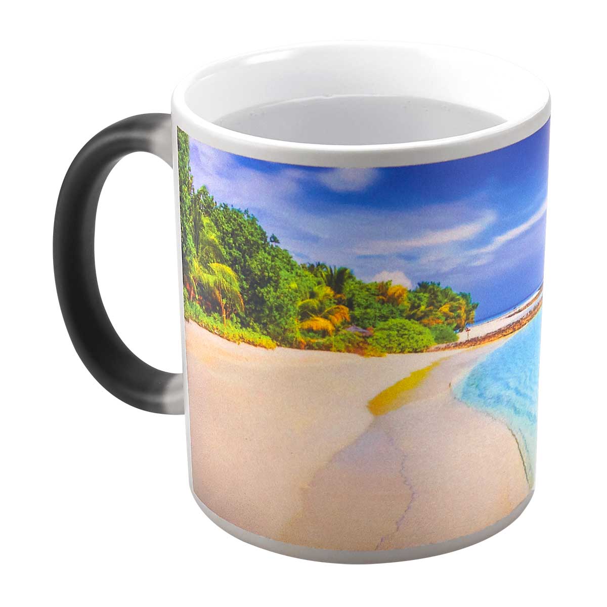 TAZA MÁGICA PARA SUBLIMAR - Taza para sublimación de cerámica termosensible que cambia de color al verterle agua caliente. Al enfriarse la taza vuelve a su color original. Venta caja cerrada de 36 piezas.
