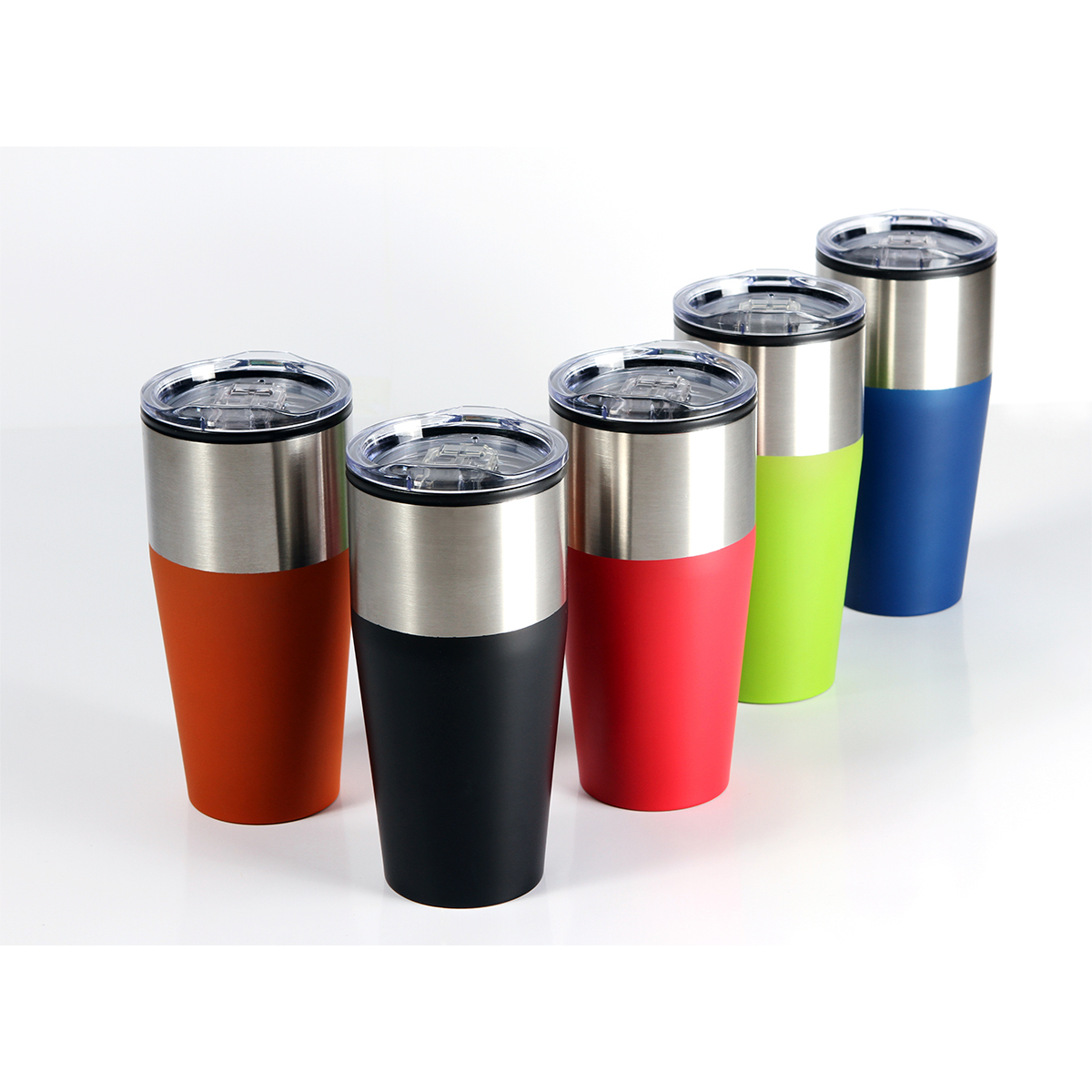 Termo Kaura. - Termo de acero inoxidable bi-tono con tapa deslizable de plástico transparente, fabricado en materiales de grado alimenticio, mantiene bebidas frías o calientes por un largo tiempo, no usar en microondas. Capacidad de 530 ml (18 oz). Incluye caja de cartón individual.