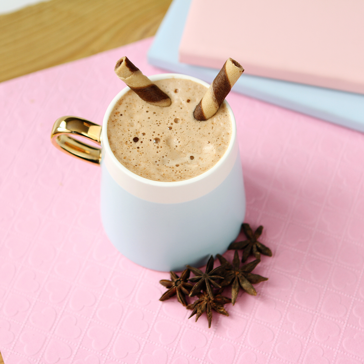 Taza Aveiro. - Taza de cerámica bi-tono con asa dorada. Capacidad de 360 ml. Incluye caja de cartón individual.
