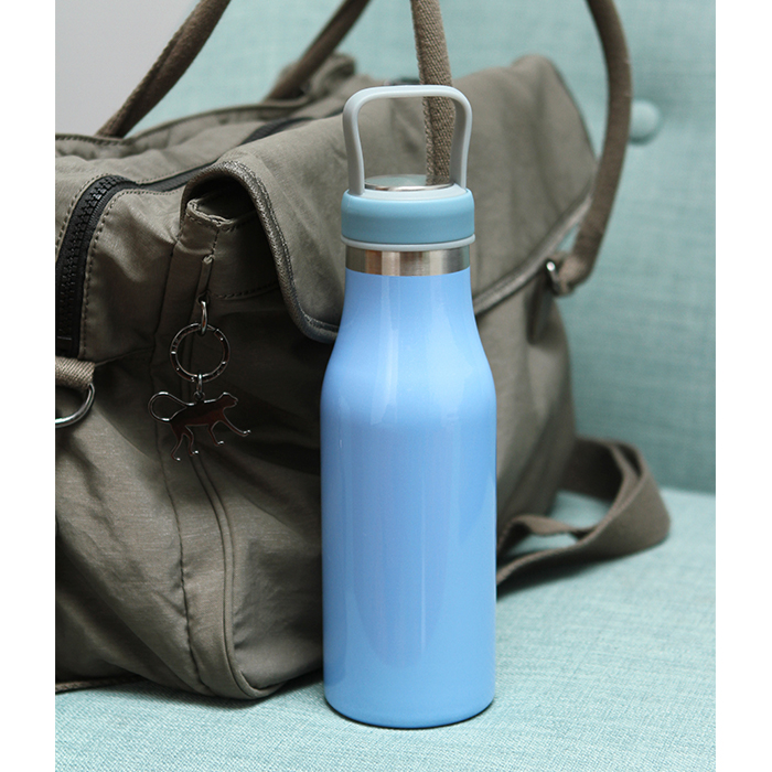 Termo Labastida. - Termo de acero inoxidable doble pared con asa de plástico y detalles metálicos, fabricado en materiales de grado alimenticio, mantiene bebidas frías o calientes por un largo tiempo, no usar en microondas. Capacidad de 510 ml (17 oz). Incluye caja de cartón individual.