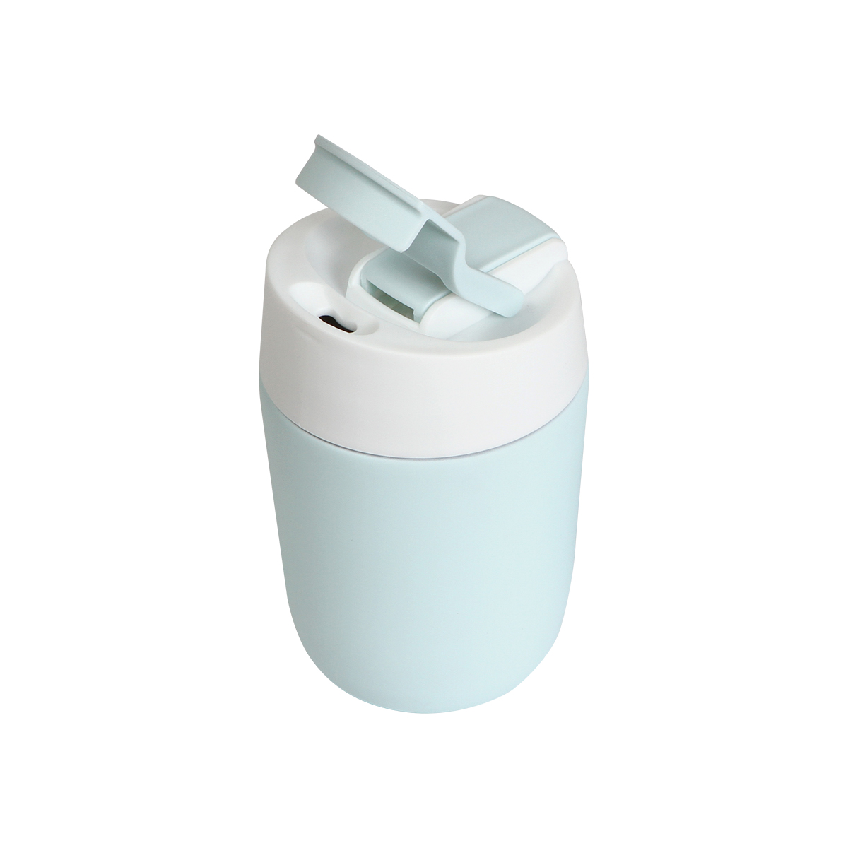 Vaso Cilegon. - Vaso térmico de acero inoxidable doble pared con recubrimiento suave, tapa de Polipropileno y doble tapadera de seguridad y chupete integrado. Fabricado en materiales de grado alimenticio, mantiene bebidas frías o calientes por un largo tiempo. No usar en microondas. Capacidad de 350 ml. Incluye caja de cartón individual.