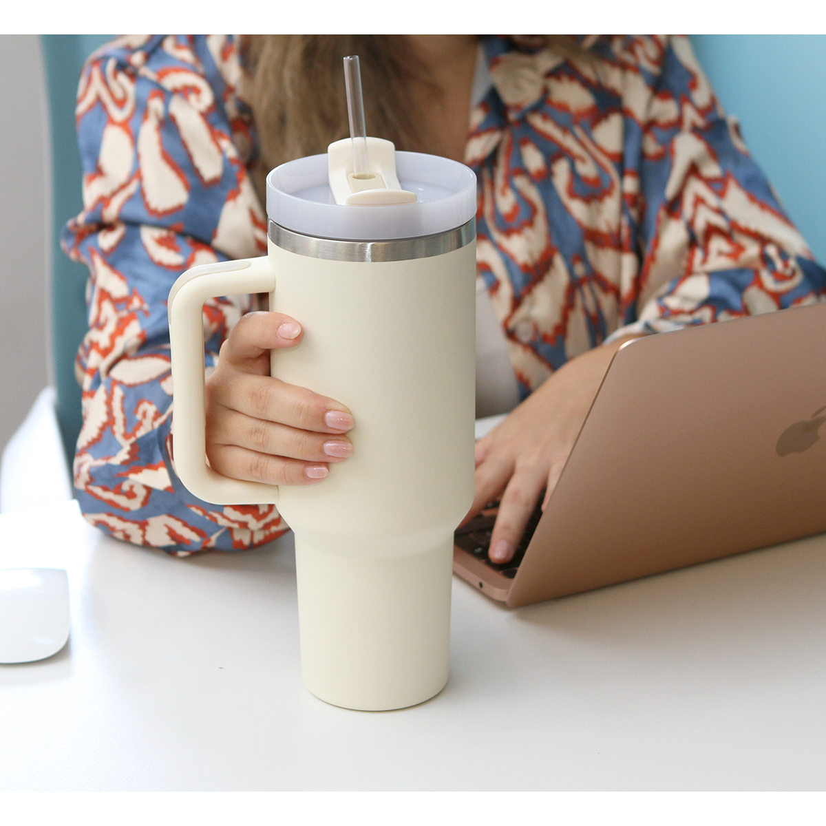 Termo Caleri. - Termo Jumbo fabricado en acero inoxidable de doble pared con asa y tapa deslizable con opción para usar con o sin popote. Cubierta giratoria con tres posiciones:  apertura especial para popote que mantiene el popote reutilizable en su lugar, apertura de bebida para tomar directamente del termo y cubierta completa para cerrar el termo.  Capacidad de 1,200 ml (40 oz). Incluye caja individual.