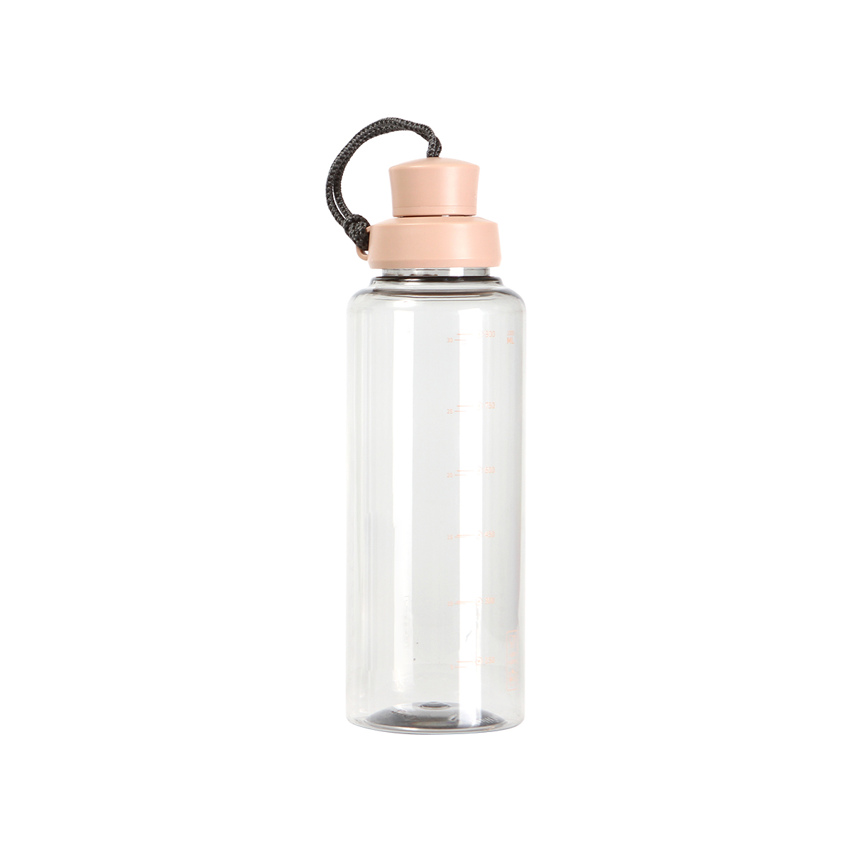Cilindro Shinas. - Cilindro transparente fabricada en policarbonato, con indicadores en mililitros y onzas, tapa de color y cordón sujetador tipo asa. Capacidad 1 litro.