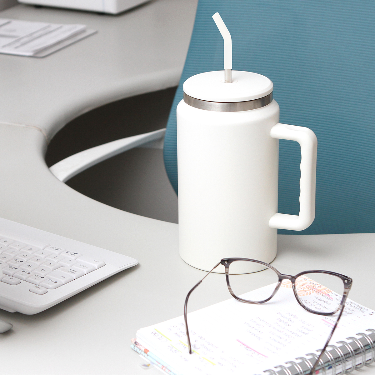 Termo Mirteto. - Nuestro termo de doble pared en acero inoxidable 304+201 tiene una capacidad de 50 Oz (1,500 ml), ideal para mantener tus bebidas a la temperatura perfecta. Con cuerpo y agarradera ergonómica de color, detalle cromado y popote de acero inoxidable con boquilla de silicón, combina funcionalidad y diseño en cada sorbo.