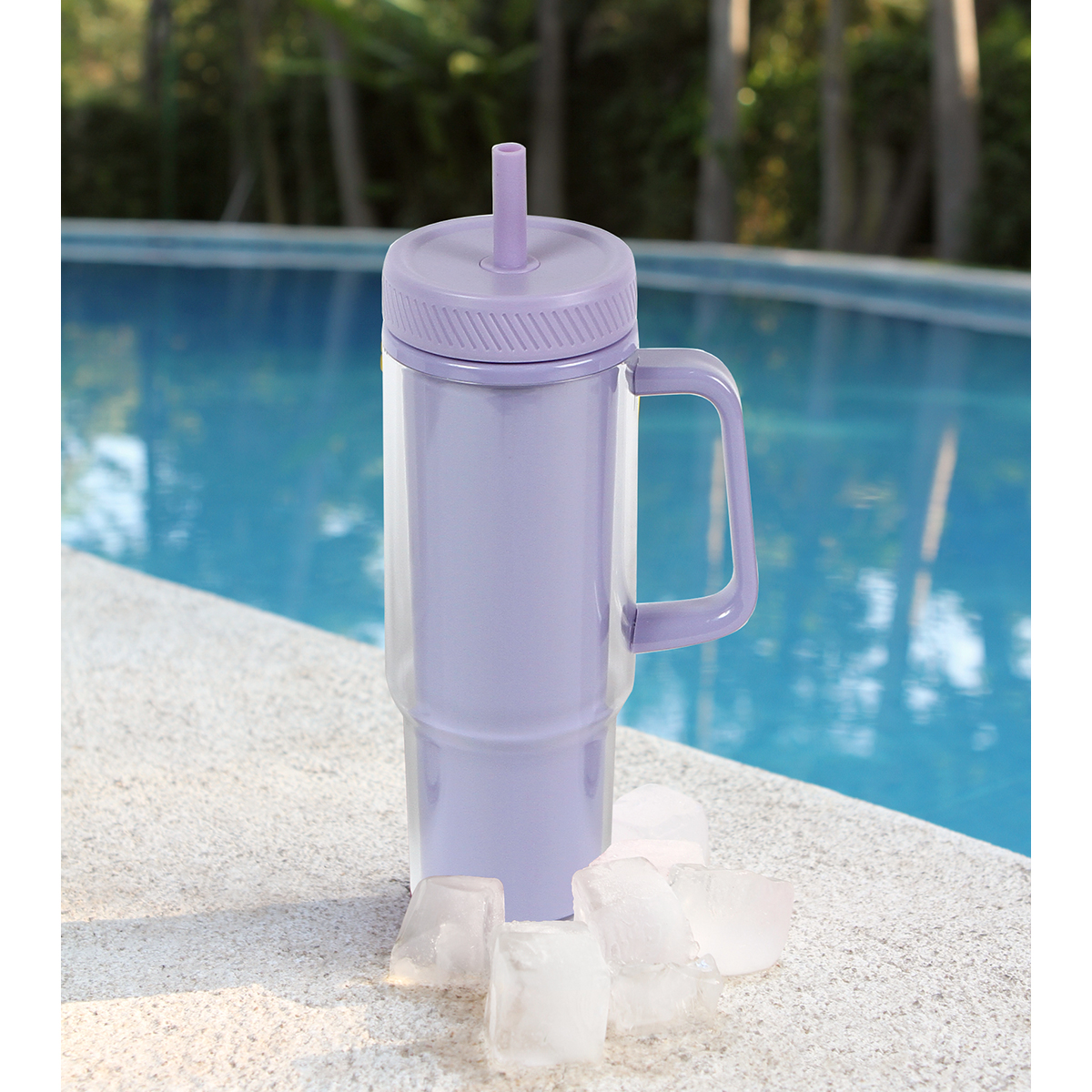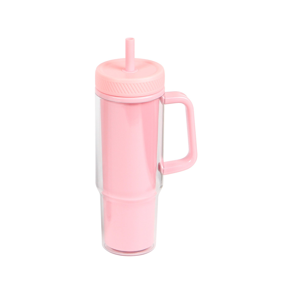 Vaso Bludenz. - Vaso de doble pared fabricado en plástico tipo AS. La parte externa traslúcido y en la parte interna de color en tendencia. Cuenta con agarradera en color traslúcido, tapa de polipropileno y popote de silicón. Capacidad de 32 onzas, 1000 ml.