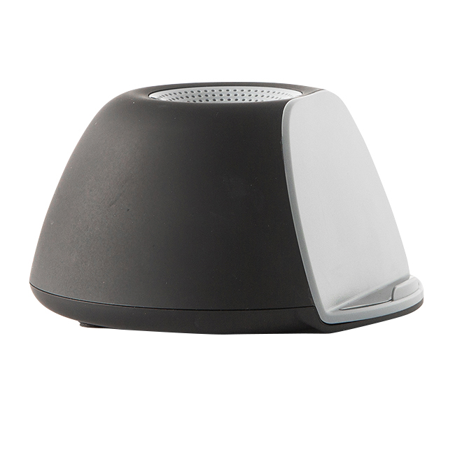 Bocina Fleming Bocina Fleming l Bocina l Cargador inalambrico para móviles (el móvil debe contar con tecnología wireless) l Versión Bluetooth : 5.0 l Speaker: 3W l Frecuencia:120Hz~20KHz l Rango efectivo : 10 meters l Play time: 2-4 hours l Incluye cable conector l Incluye manual de usuario. l Colores: Negro Material: Plástico con acabado en rubber. Medida: 6.5 x 11.5 cm diámetro. Impresión: Tampografía. Área de Impresión: 4 x 3 cm.
