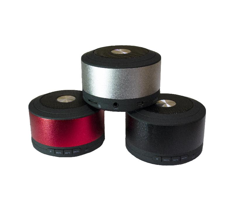 BOCINA BLUETOOTH Bocina Bluetooth Metálica con base antiderrapante. Función Manos Libres incluida, cable cargador USB y lector Micro SD. Duración aproximada de 5 horas. Alcance máximo de conexión 10 m.