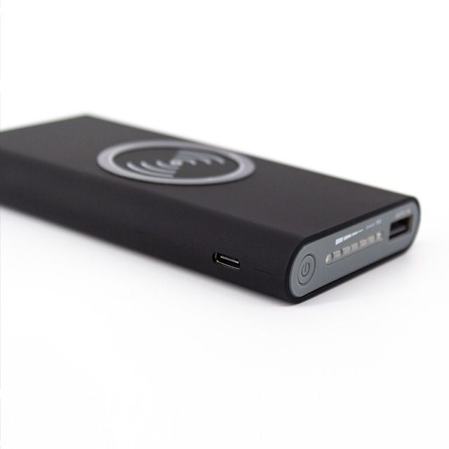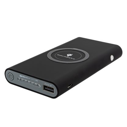 POWER BANK WIRELESS. Power Bank para carga Inalámbrica y carga Convencional por cable. Soporta la carga de hasta 2 dispositivos simultáneamente. Capacidad de10,000 mAh. Cable USB tipo A y C. *Parche QI se vende por separado.