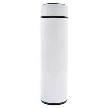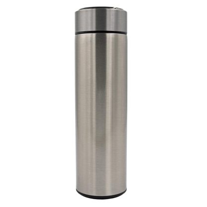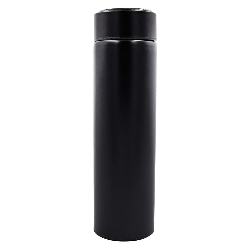 TERMO DIGITAL SMART 500ml Elegante termo con capacidad de 500 ml fabricado en acero inoxidable grado alimenticio recubierto con pintura para un mejor agarre (excepto color plata). Cuenta con una pantalla digital en la tapa que muestra la temperatura real del líquido (se enciende al tocar la superficie superior de la tapa). Incluye -1 Batería CR2023 (instalada) -1 Filtro para té