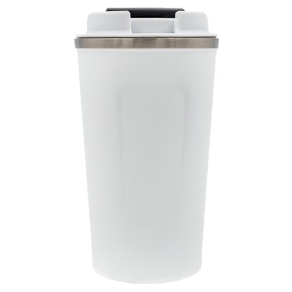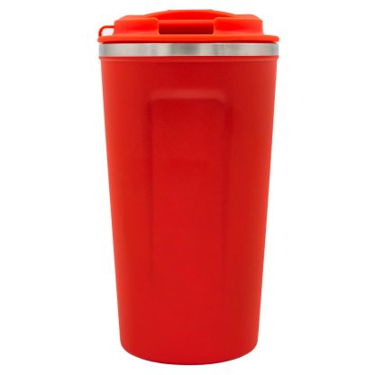 Vaso termo con capacidad de 510 ml fabricado en acero inoxidable grado alimenticio recubierto con pintura para un mejor agarre. Su diseño de doble pared con aislamiento al vacio permite mantener la temperatura de la bebida por más tiempo.