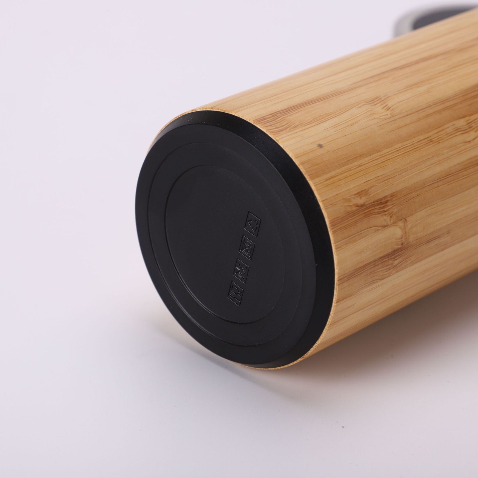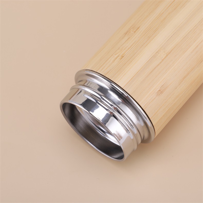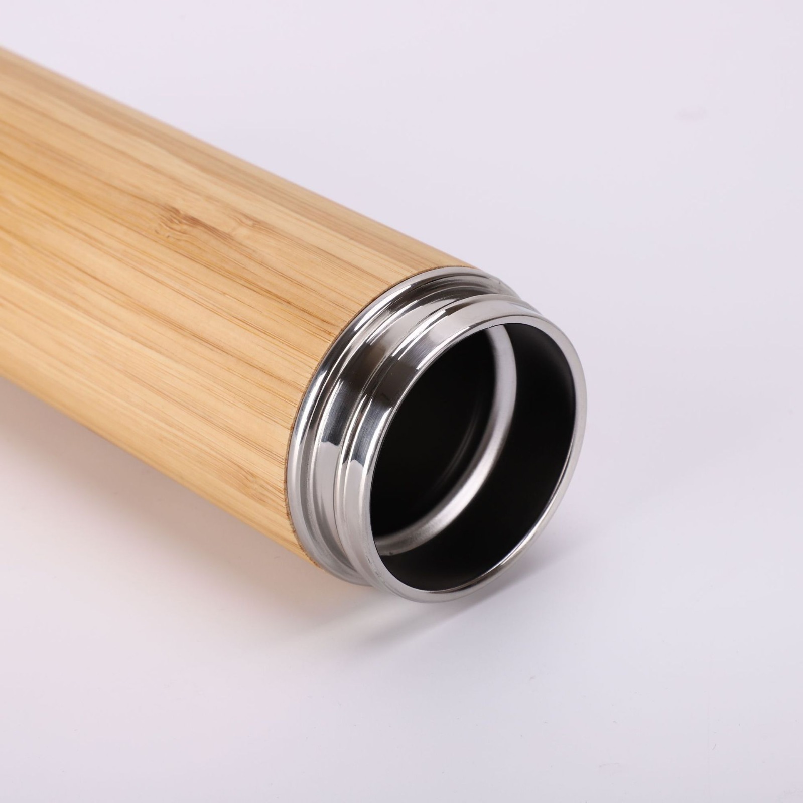 HANNAH Cilindro de acero inoxidable con detalle de bambú en tapa....