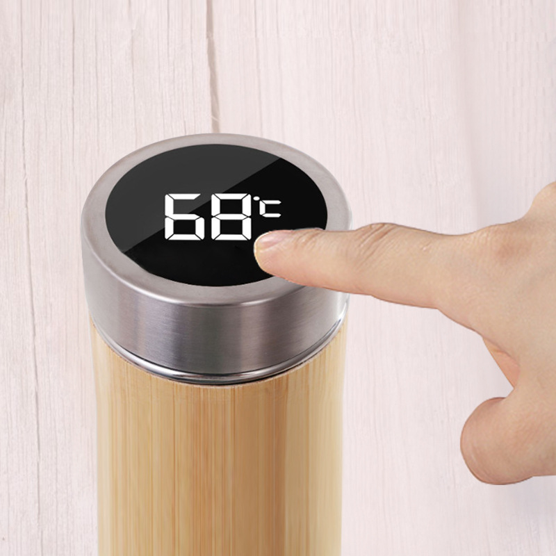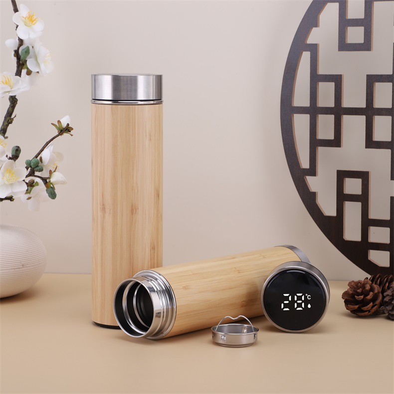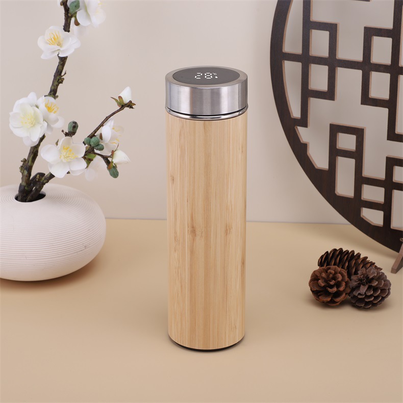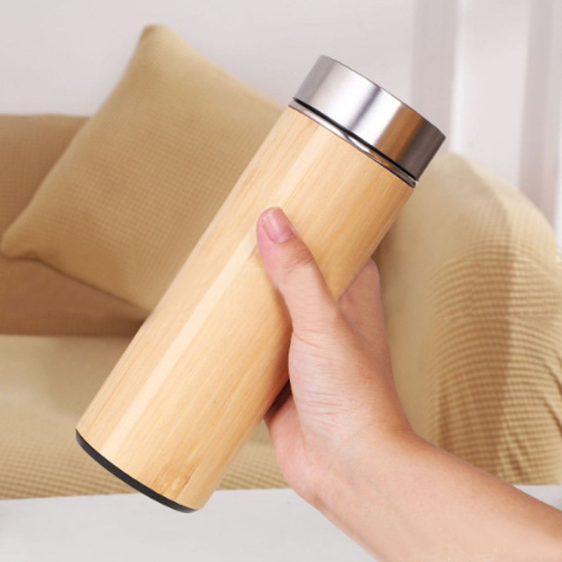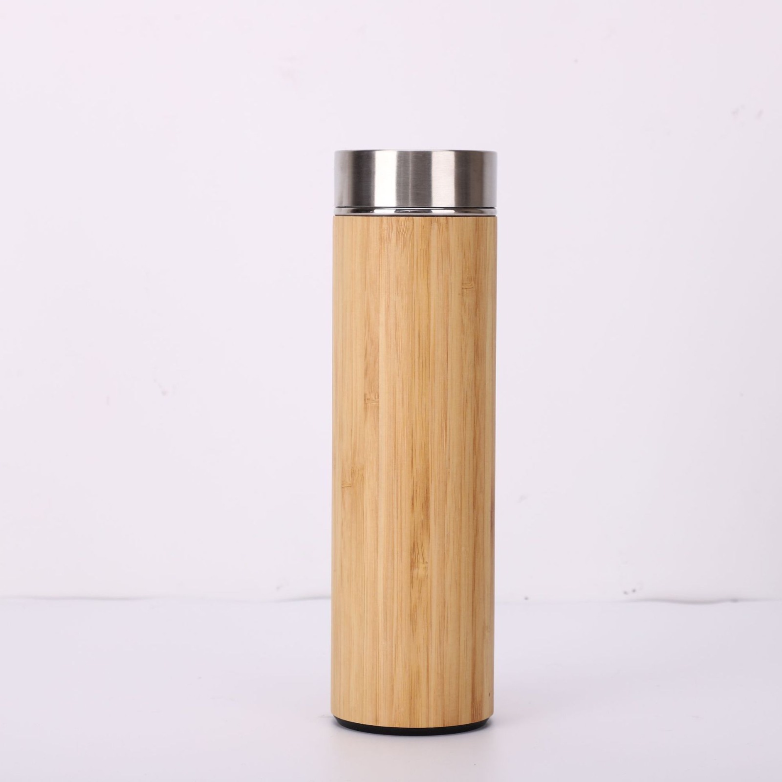 HANNAH Cilindro de acero inoxidable con detalle de bambú en tapa....