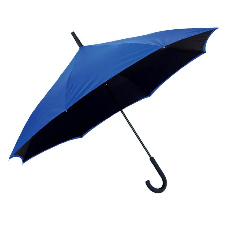 Paraguas de doble cara con sistema de cerrado invertido. Medidas: 80 x 61 cm Material: Pongee Empaque: Bolsa de plástico.