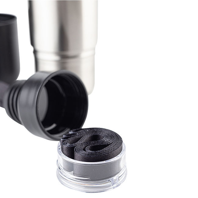 Tapa en rosca con cierrre hermético y cavidad para almacenaje.