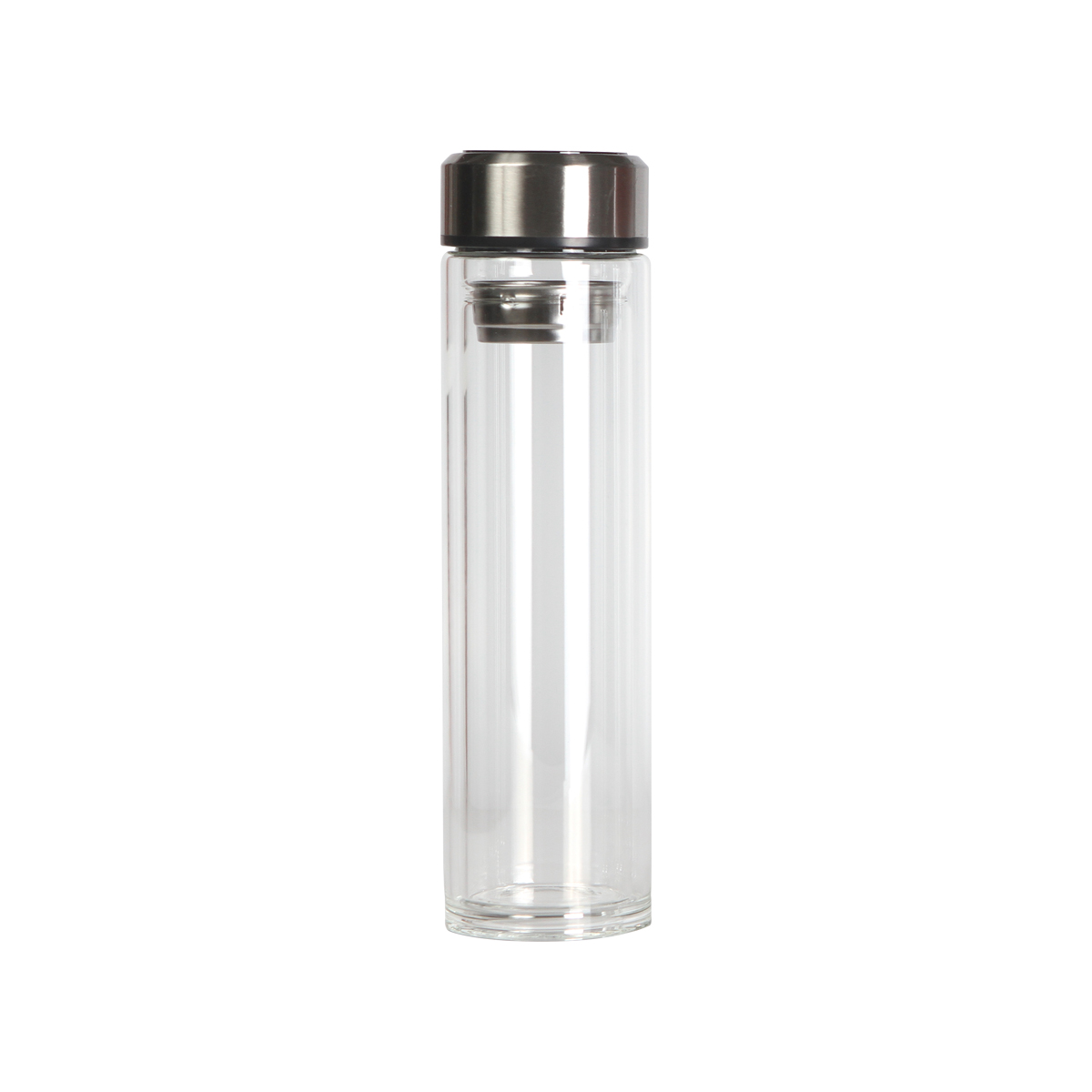 BOTELLA DE VIDRIO ¨ANANÁ¨ Cuerpo traslúcido con tapa de acero inoxidable y t...
