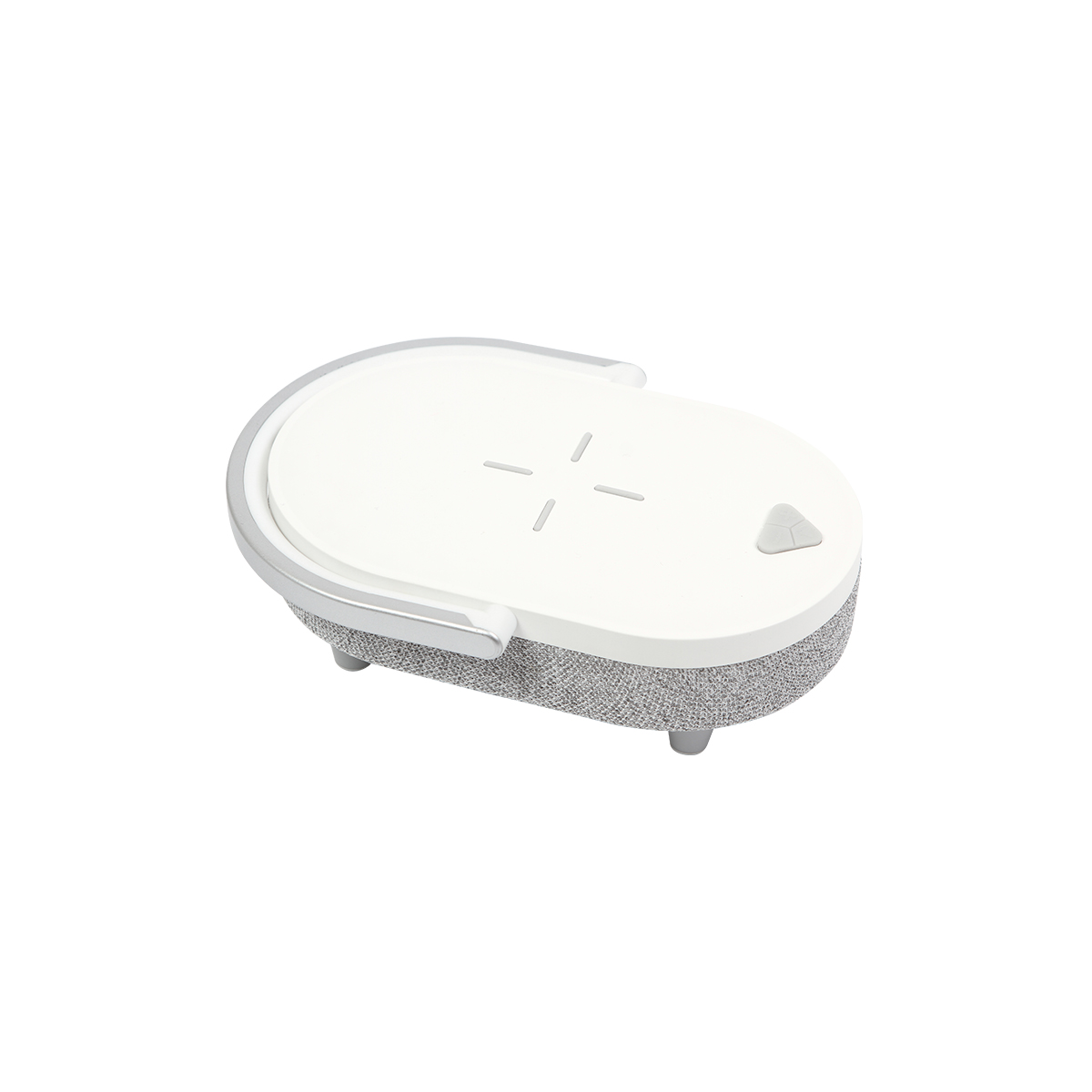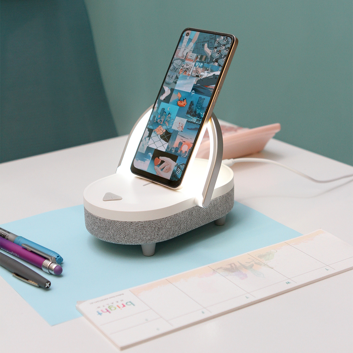 Bocina Corsari. - Bocina multifunción con cargador inalámbrico con distancia de carga de 8 mm, soporte para teléfono, lámpara de escritorio con luz ajustable, fabricada en PC (plástico de policarbonato), conexión de sonido sin cables.
