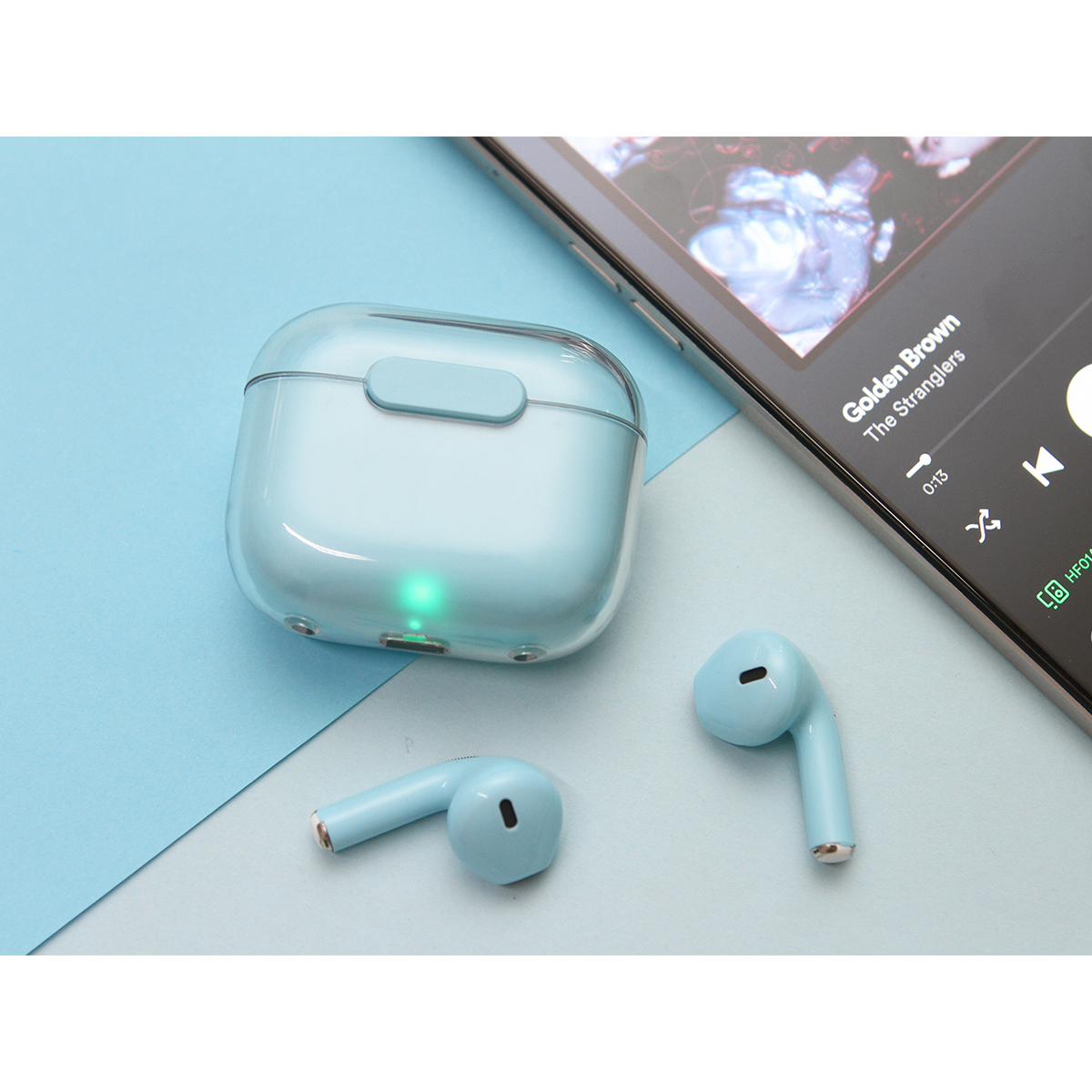 Audífonos Saue. - Set de audífonos con conexión de sonido sin cables, con estuche de carga. Distancia de transmisión de 9.9 m. Tiempo de reproducción de 4 a 5 horas. Puerto de carga tipo-C. Capacidad de batería de estuche de 250 mAh y de los audífonos de 30 mAh.