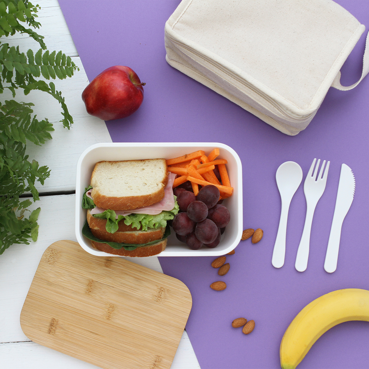LONCHERA BAMBLUNCH Contenedor de alimentos con tapa de Bambú. Posee un comparti...