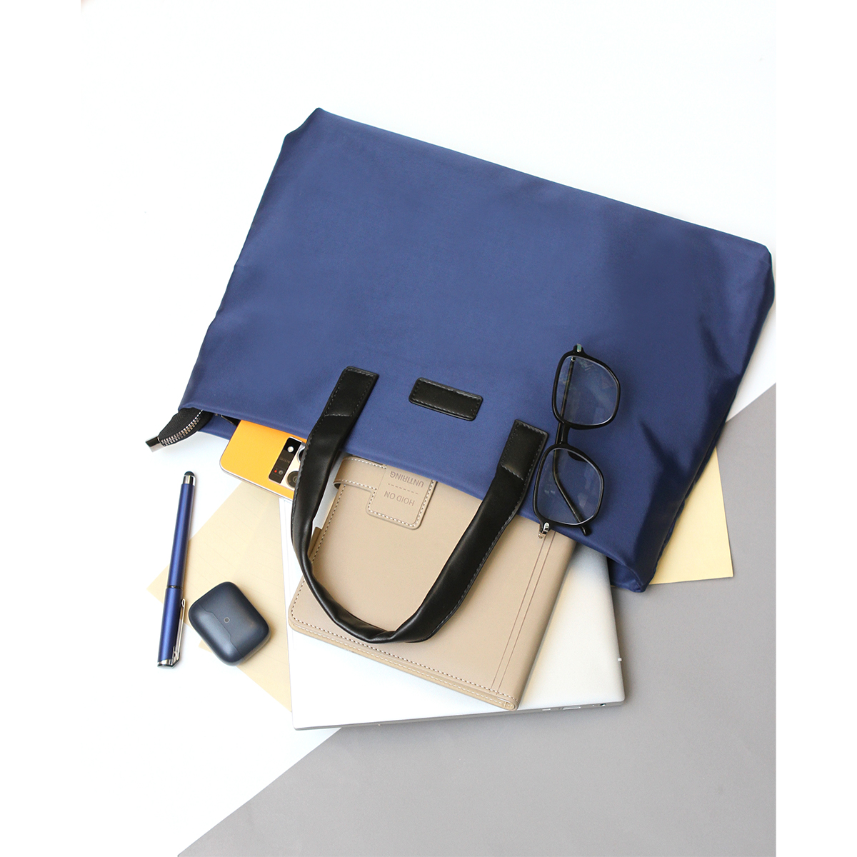 ALIN - Bolsa de poliéster bicolor con cierre y asas de curpiel....