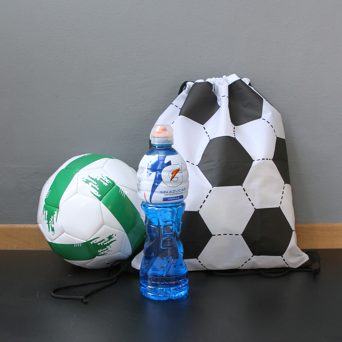 Mochila Dunn. - Morral fabricado en poliéster con un compartimento principal con correas laterales, las cuales ayudan a cerrar el mismo. Es una bolsa ligera y práctica con un llamativo print de balón de fútbol, perfecta para uso diario o llevar tus esenciales con estilo deportivo."