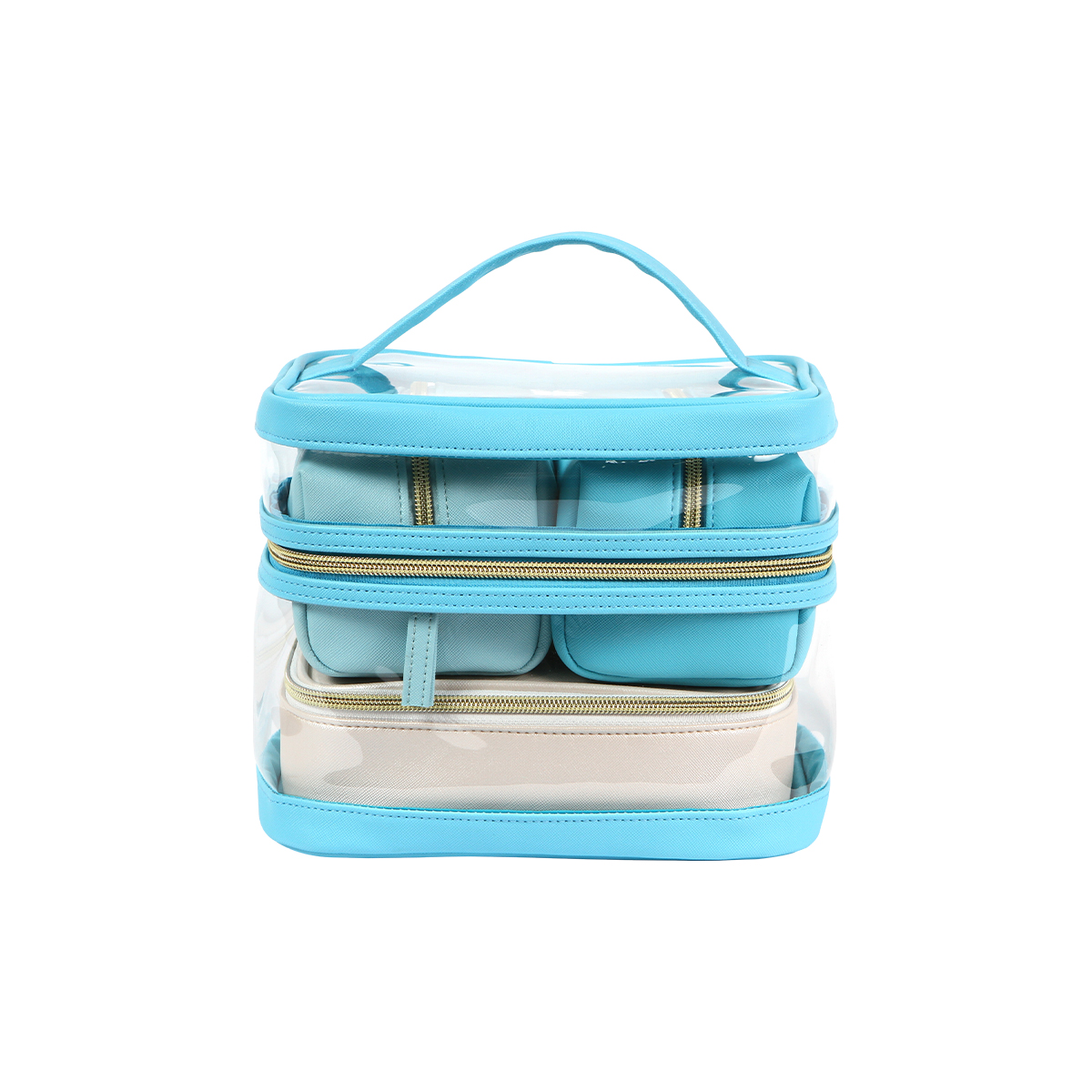 LILI Cosmetiquera de plástico con parte superior transparente, costuras en colo...