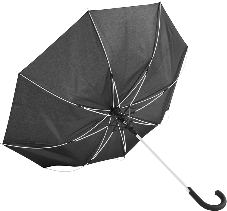 Paraguas APERTURA AUTOMÁTICA con sistema antiviento. Eje de metal y varillas de fibra de vidrio de color, puntas metálicas, mango curvo de goma con botón de color, revestimiento de polyester pongee, cierre con correa de velcro.PARAGUAS "CANCAN"