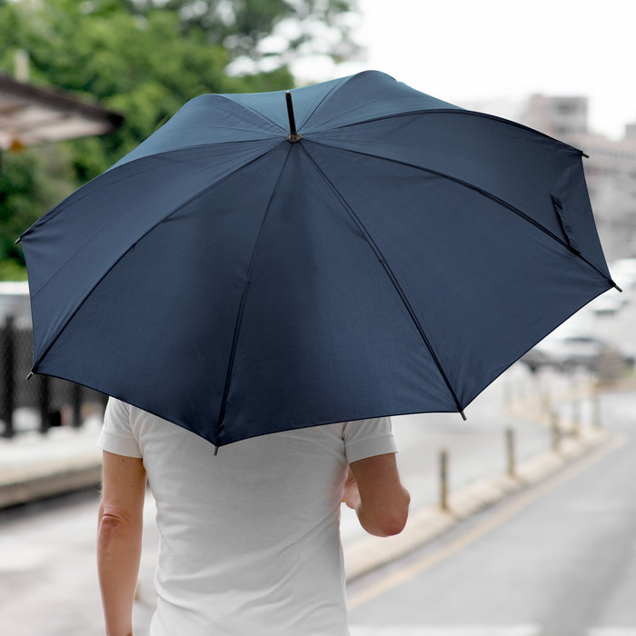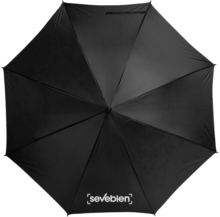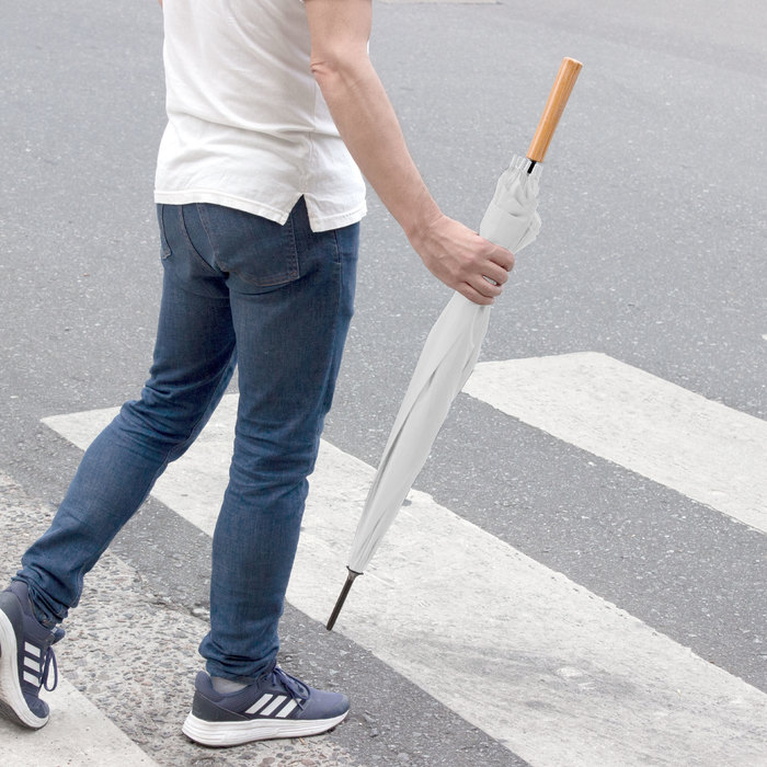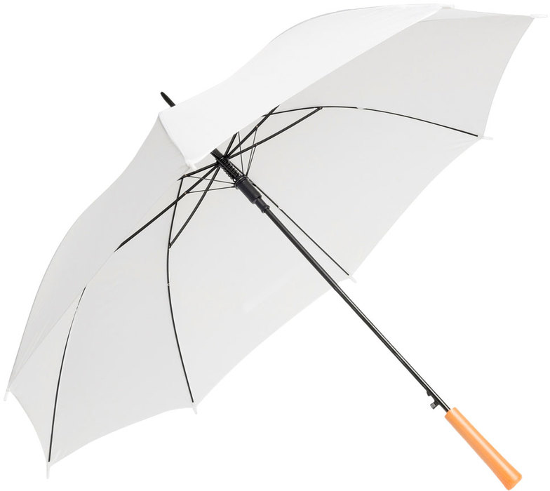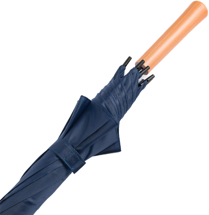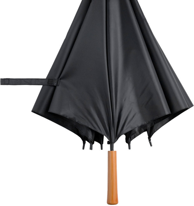PARAGUAS "KELLY" Paraguas APERTURA AUTOMÁTICA Y CIERRE MANUAL. Eje, varillas y punta metálicas, cierre con correa de velcro y mango en PVC, símil madera.