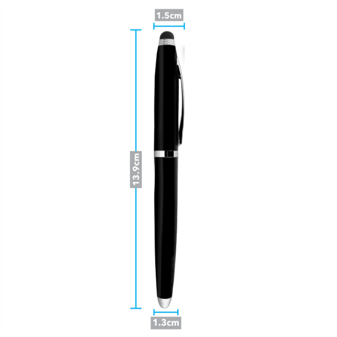 Century Touch Bolígrafo metálico con tapón que cierra a presión. Acabados brillantes. Detalles color cromo. Mismo diseño que el bolígrafo Century, pero con touch en la punta del tapón. Escritura de alto desempeño debido a su repuesto japonés tipo roller (a elegir entre tinta negra o azul). Incluye estuche individual.