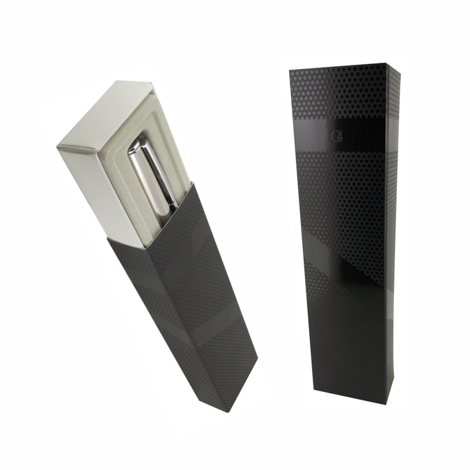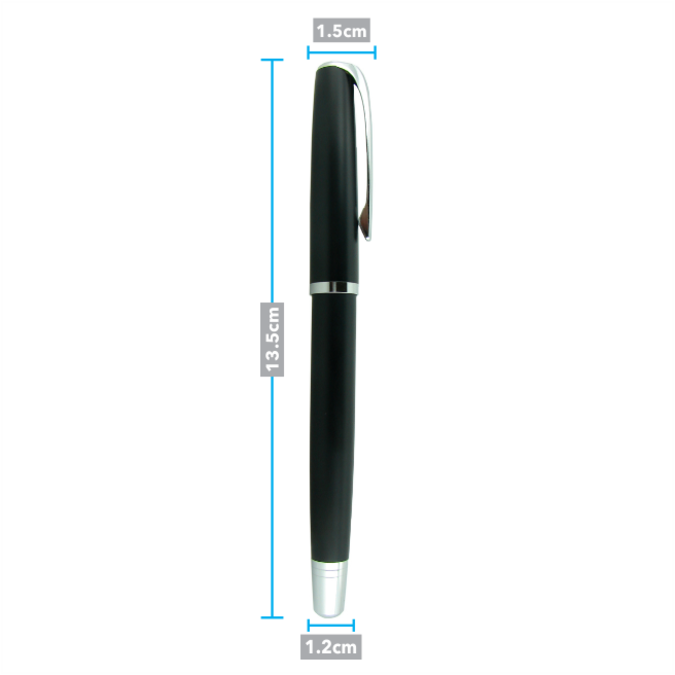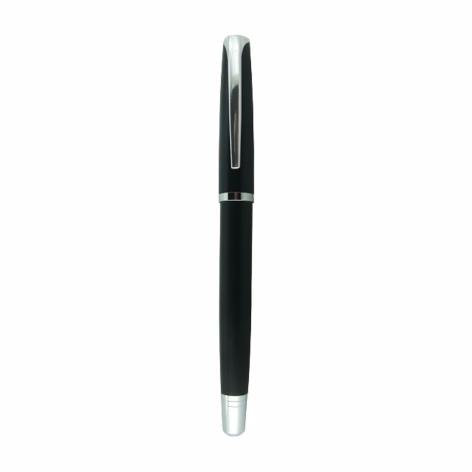 Imperial Negra Bolígrafo metálico con tapón que cierra a presión. Con gran variedad de colores. Acabado mate y detalles cromados, con excepción de la Imperial negra de detalles dorados. Escritura de alto desempeño debido a su repuesto japonés tipo roller (a elegir entre tinta negra o azul). Incluye estuche individual.