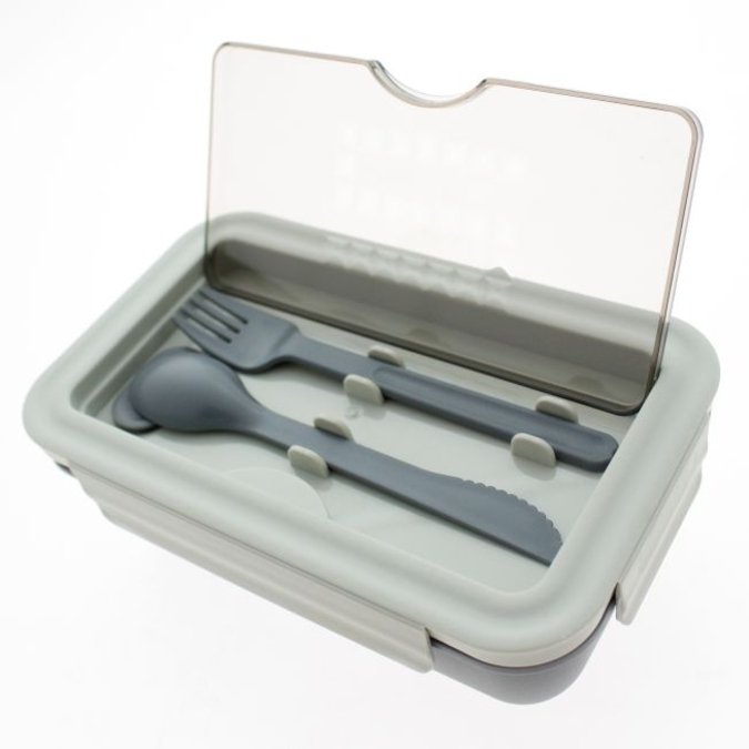 Lonchera Takayama Deli Contenedor de alimentos fabricado en polipropileno en tonalidades grises. Cuenta con un amplio recipiente dividido en 2 secciones que te permitirán organizar mejor tus platillos. Capacidad sección pequeña: 275 ml. Capacidad sección grande: 500 ml. Tapa con espacio independiente para cubiertos (cuchara-cuchillo y tenedor). Cierre hermético de 4 clips. Apto para microondas y lavavajillas. Lavar antes de usar