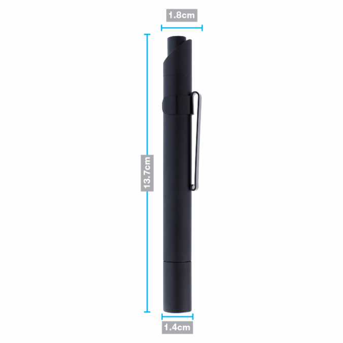 Linterna Lux Linterna de bolsillo color negro mate. Cuenta con clip para sujetarla al bolsillo, mismo que puede retirarse si así lo prefiere el usuario. Luz led de alta luminosidad. Mecanismo retráctil. Funciona con 2 baterías AAA (No incluidas).
